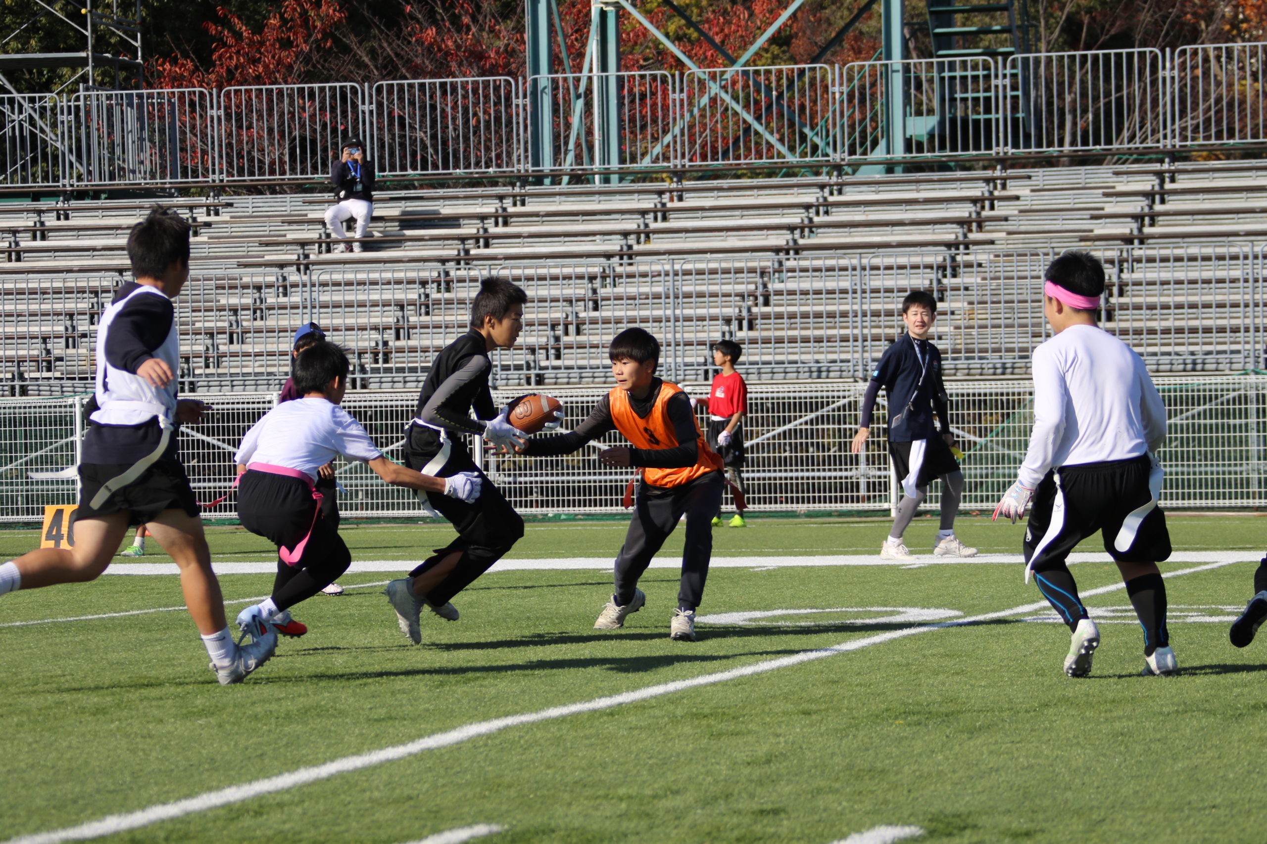 秋のフラッグフットボール関西大会も終わり、今回のスクールは総勢40名を超えるスクール生が各クラスに分かれて練習しました。