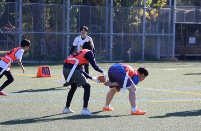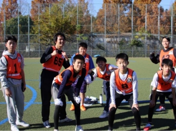 ジュニアユースの5名はスクール生だけでゲーム形式の練習はできないため、同じフィールドで行われた第12回全国教員フラッグフットボール大会の西宮市教員チーム「ファルコンズ」さんへ助っ人として参加しました。大会には4チームの参加があり他のチームは、教員ばかりで構成されていました。
